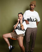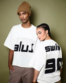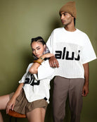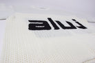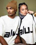 Introducing the Aluj Crochet Jersey, crafted from 100% recycled cotton, designed for effortless style from beach to street. Perfect for warm or hot climates, or as a layering piece in cooler weather, this versatile top is sure to become your go-to statement piece. Featuring a chic beige hue with bold black lettering and finished with an Aluj woven tag at the hem, its box-cut silhouette and drop shoulder design offer a relaxed, on-trend fit. Embrace comfort and sustainability with this timeless wardrobe essential.