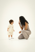 Discover the latest addition to Aluj's lineup: the Aluj Kids 2-Piece Set. Crafted from breathable cotton, this set features a feather-light unisex pullover paired with coordinating shorts for maximum comfort and style for your little ones. This set has an adorable oversized fit.