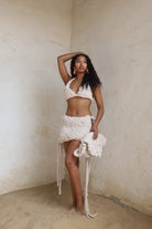 Pair it with the matching Chunky Crochet Mini Skirt and Tie-Up Top or complement your favorite Aluj Swim Suit for a chic, effortless vibe. Each bag is handmade, giving it a unique, knotted texture designed to highlight an edgy, imperfect style.