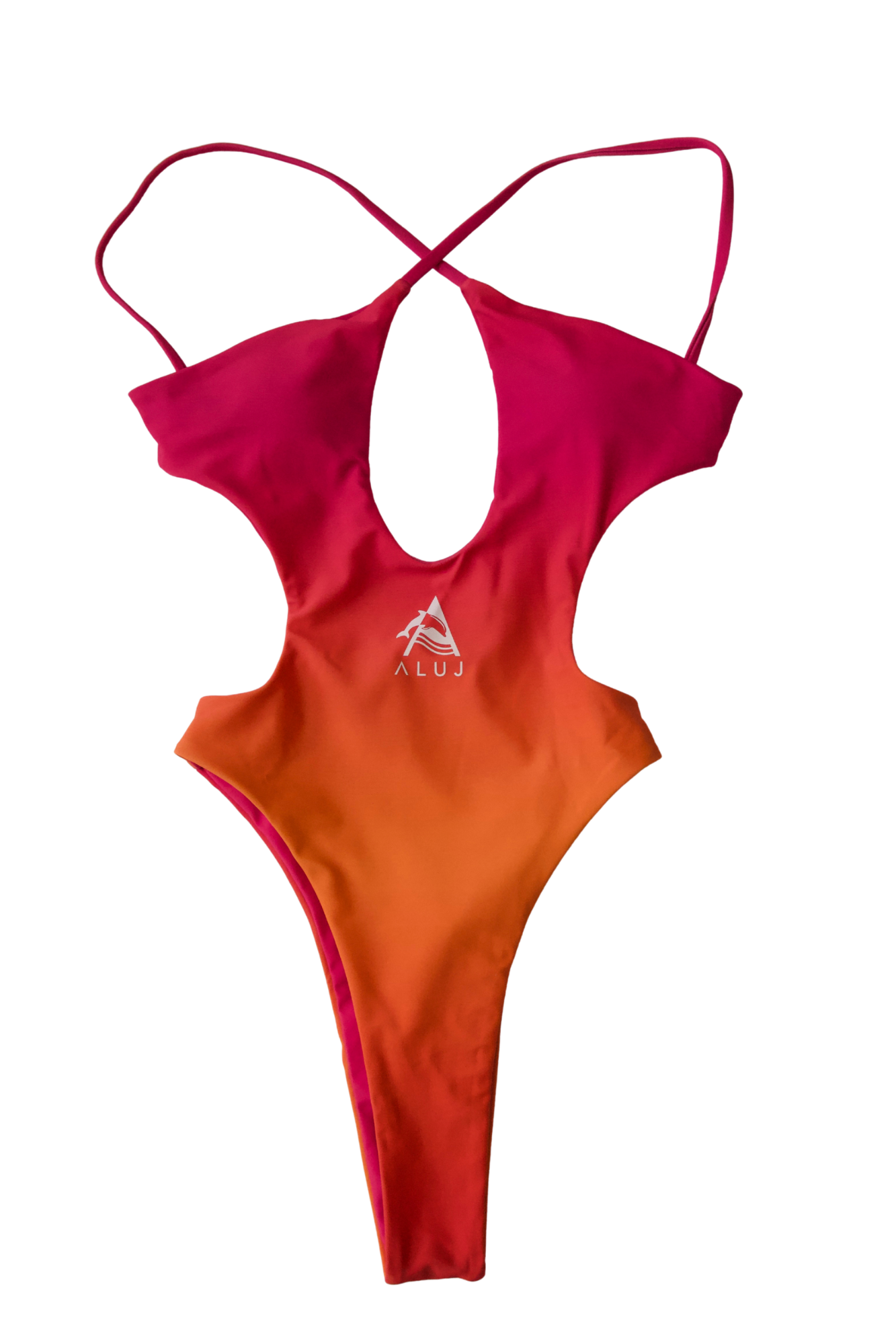 Introducing our stunning Pink Ombre Monokini, featuring a seamless transition from pink to orange that beautifully enhances your silhouette. The ALUJ logo adds a touch of elegance, while the stylish back cut-out design offers a chic and modern twist. This swimsuit is designed to create a slim waist, making it the perfect blend of fashion and function for your beach or poolside adventures. Dive into summer with confidence and style in this eye-catching piece